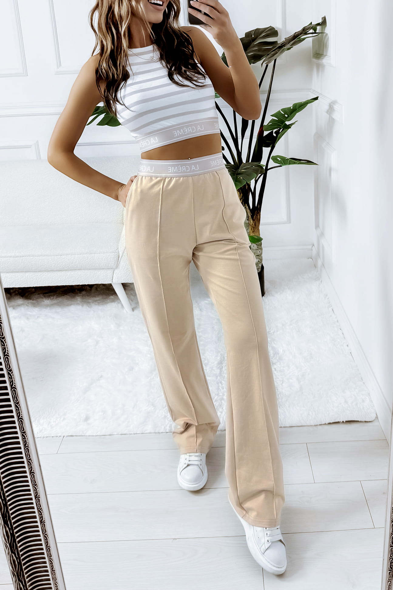 KOMPLET FLORENCE SPODNIE LATTE I TOP W PASKI LATTE