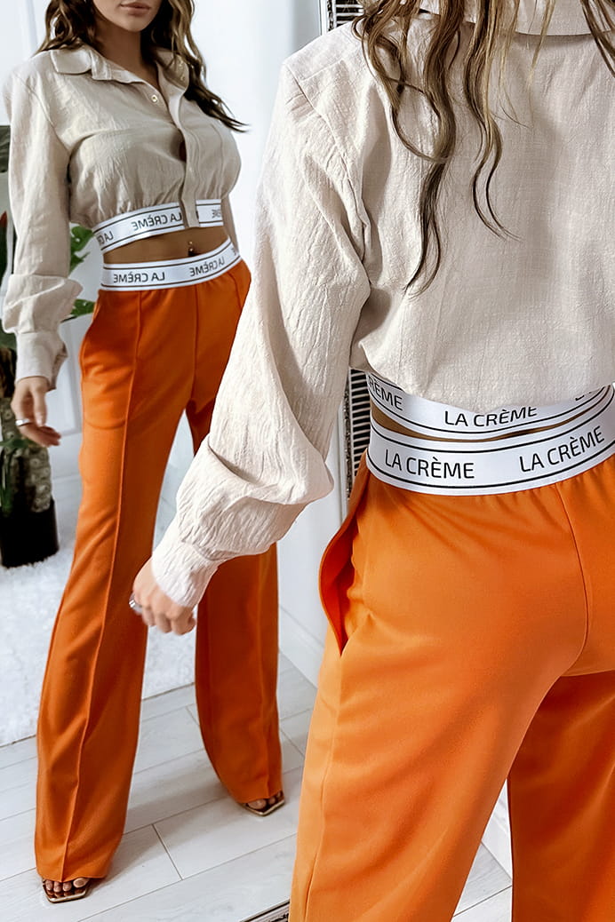 KOMPLET JUDITH KOSZULA LATTE I SPODNIE POMARAŃCZ